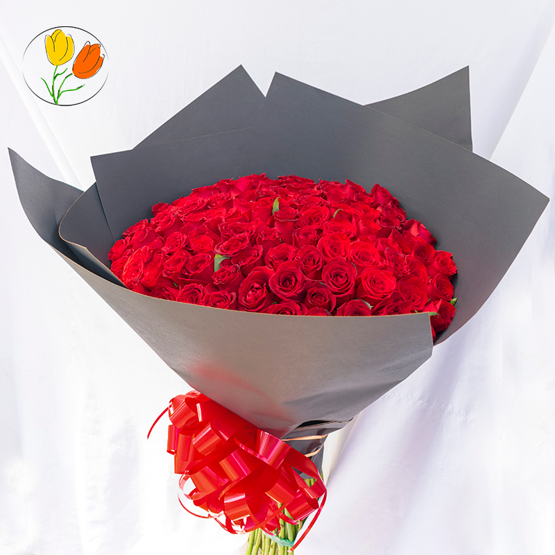 100 rosas rojas en ramo a domicilio en CDMX: Azcapotzalco, en EdoMex: Atizapan de Zaragoza, Nicolas Romero, Isidro Fabela, Cuautitlán Izcalli, Naucalpan, Tlalnepantla.