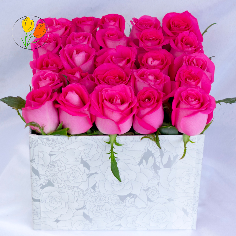 Caja de rosas fucsia a domicilio en CDMX: Azcapotzalco, en EdoMex: Atizapan de Zaragoza, Nicolas Romero, Isidro Fabela, Cuautitlán Izcalli, Naucalpan, Tlalnepantla