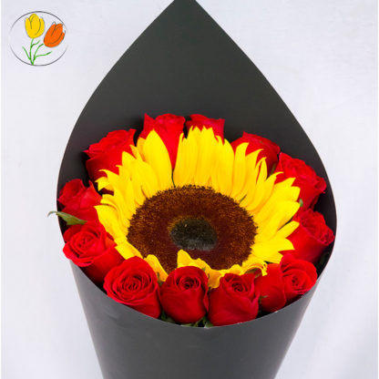 Girasol y rosas en cono a domicilio en CDMX: Azcapotzalco, en EdoMex: Atizapan de Zaragoza, Nicolas Romero, Isidro Fabela, Cuautitlán Izcalli, Naucalpan, Tlalnepantla.