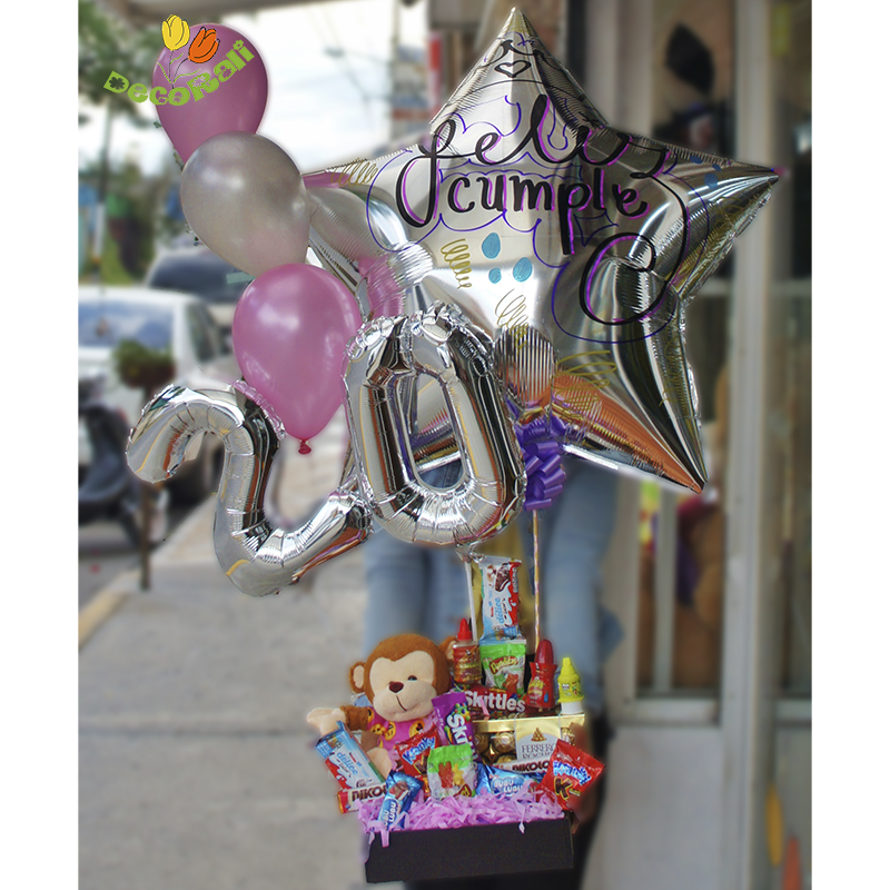 Arreglo con globo grande personalizado globos y dulces incluye: